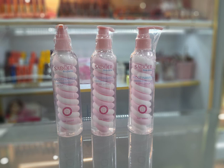 لوسیون بدن نیکوتینامید مدل مارشمالو برند سادور رنگ صورتی